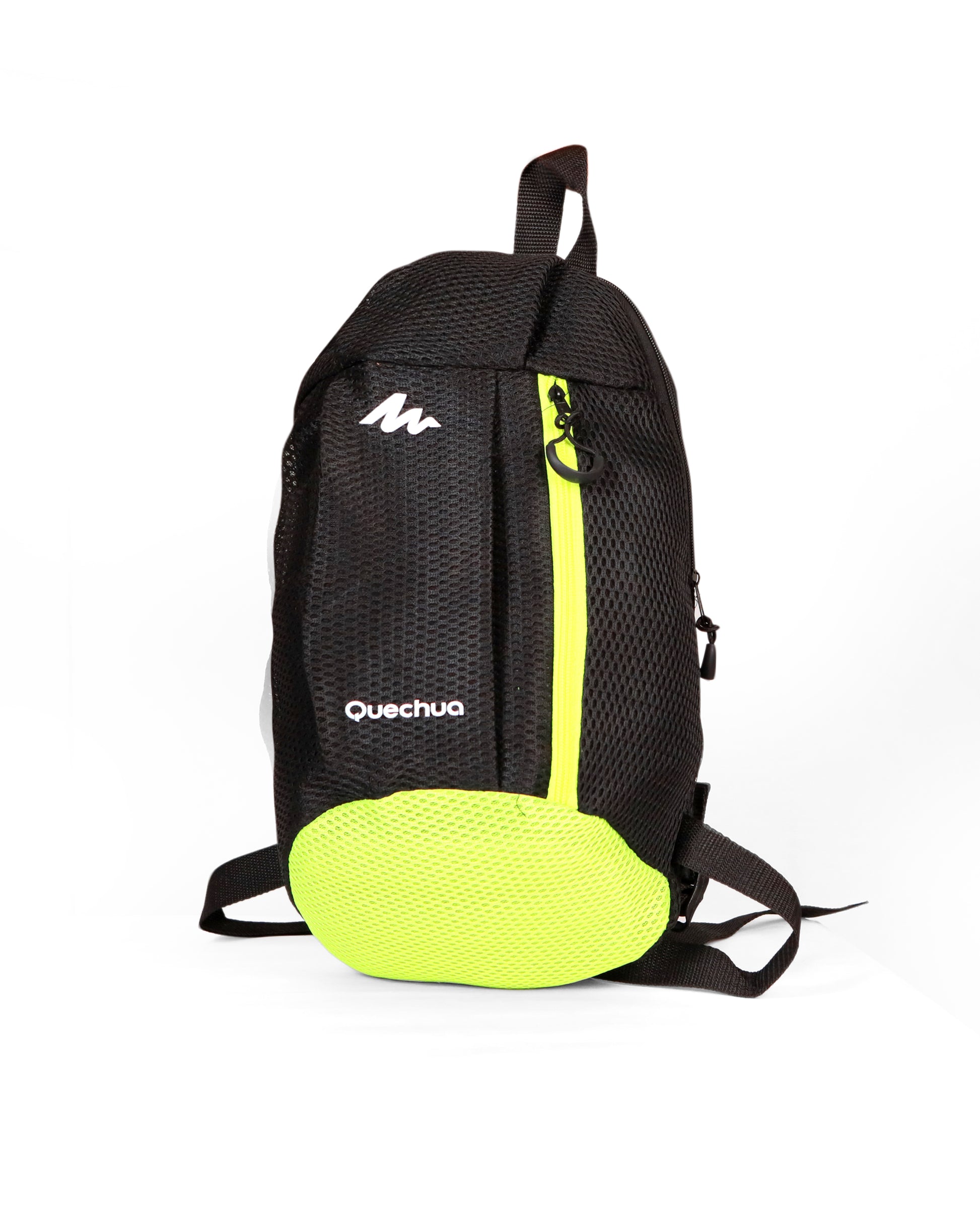 Stay light and ready for adventure with the Quechua Compact Hiking Backpack, designed for day trips, cycling, and casual outdoor use. Featuring a sleek black body with a vibrant neon yellow bottom and zipper accent, this backpack combines style with practicality. The main compartment provides enough space for your essentials, while the lightweight mesh fabric ensures comfort and breathability. Adjustable shoulder straps offer a perfect fit, making it ideal for hiking, commuting, or sports activities.